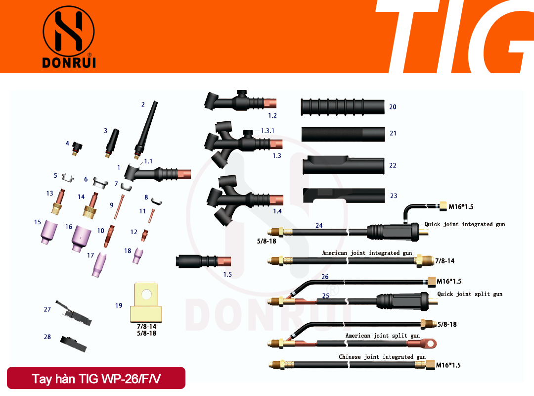 - Đầu súng WP-26V có chỉnh khí đã kèm theo kẹp kim, đầu kẹp, long cáp, sứ